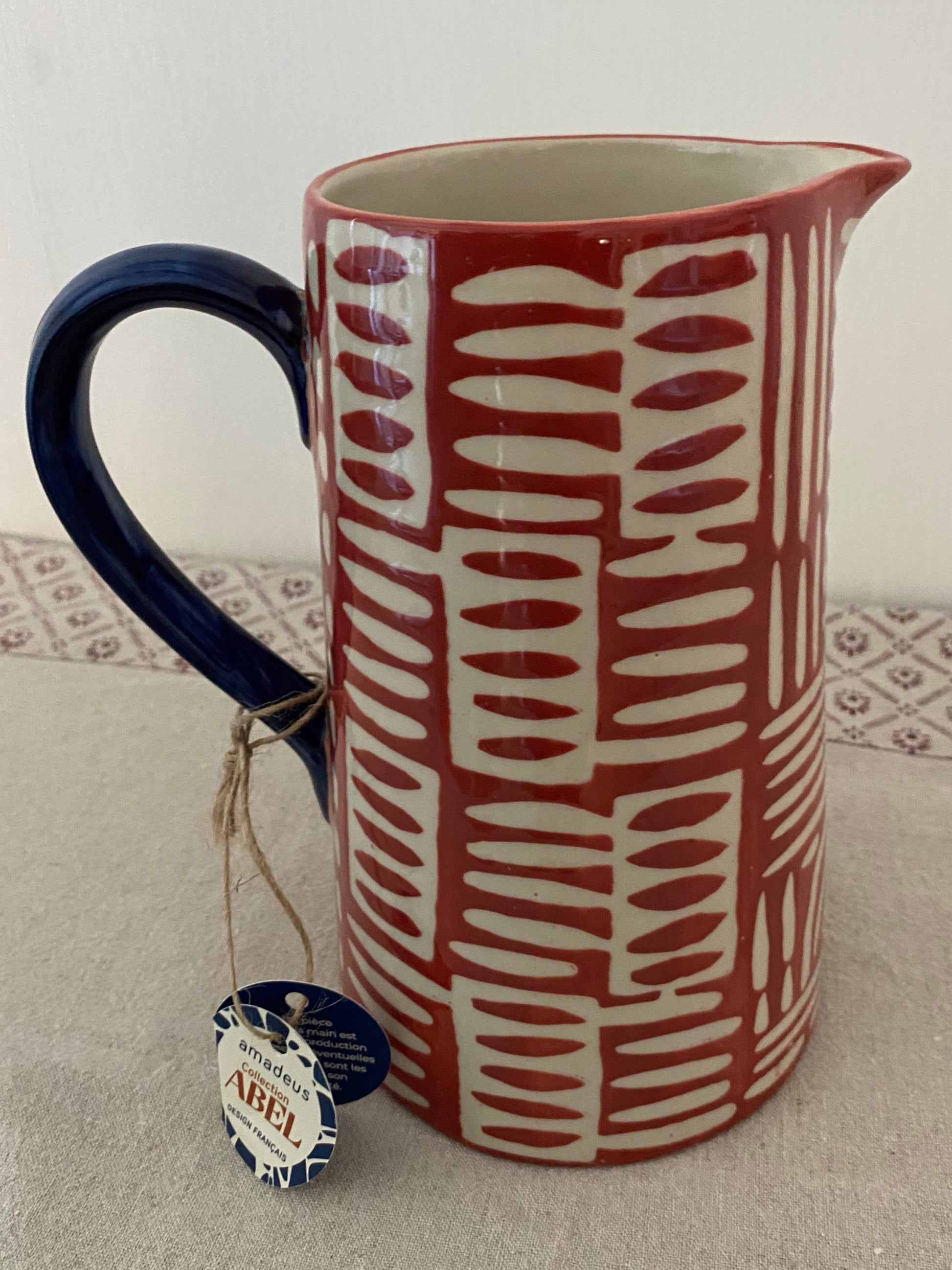 Ce pichet en grès au design vivant et joyeux apporte énergie et charme à votre table. Parfait pour servir vos boissons avec style et convivialité.